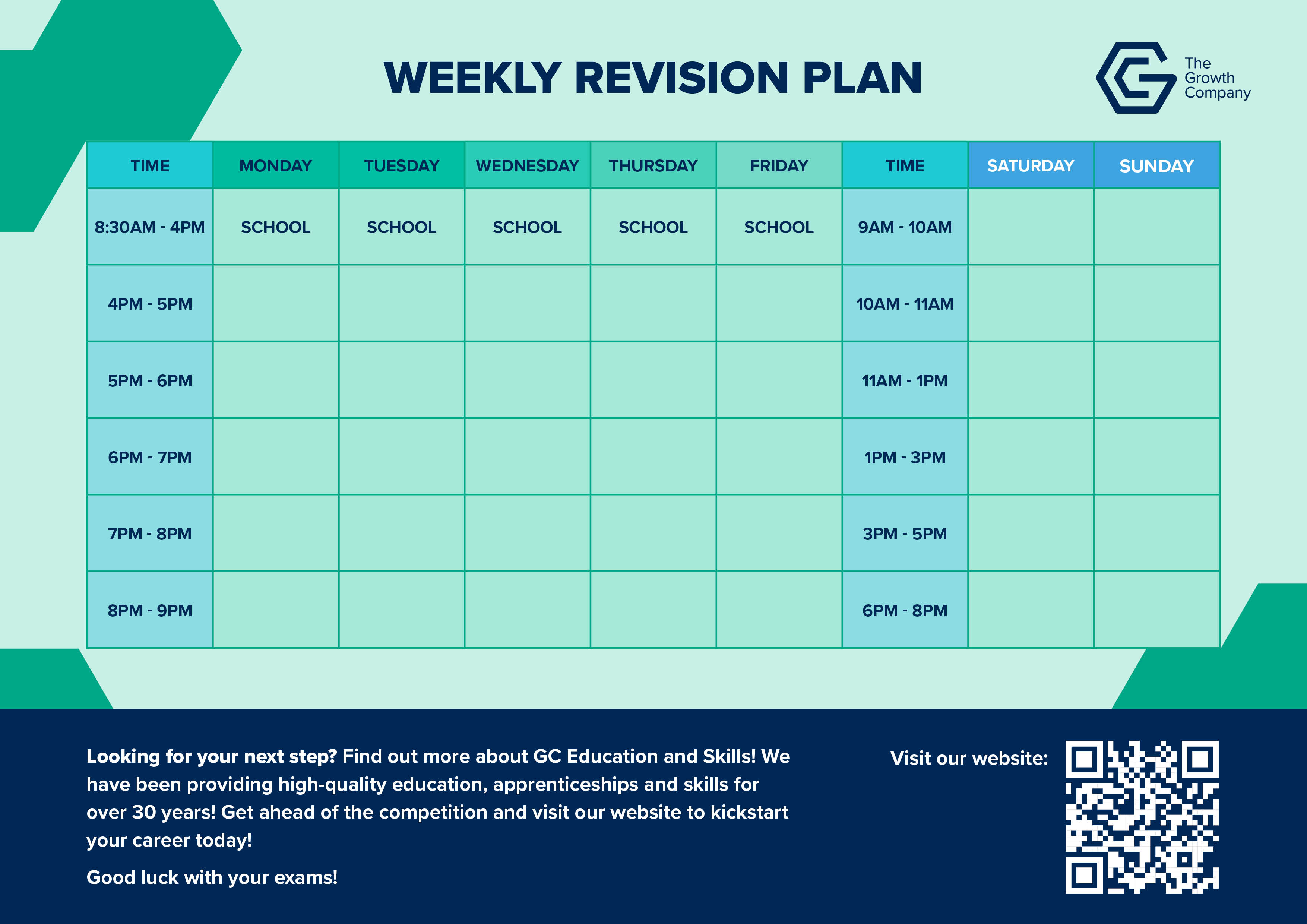 Click on the image below to download and save our handy ‘Weekly Revision Plan’ to help you get started with planning your week!